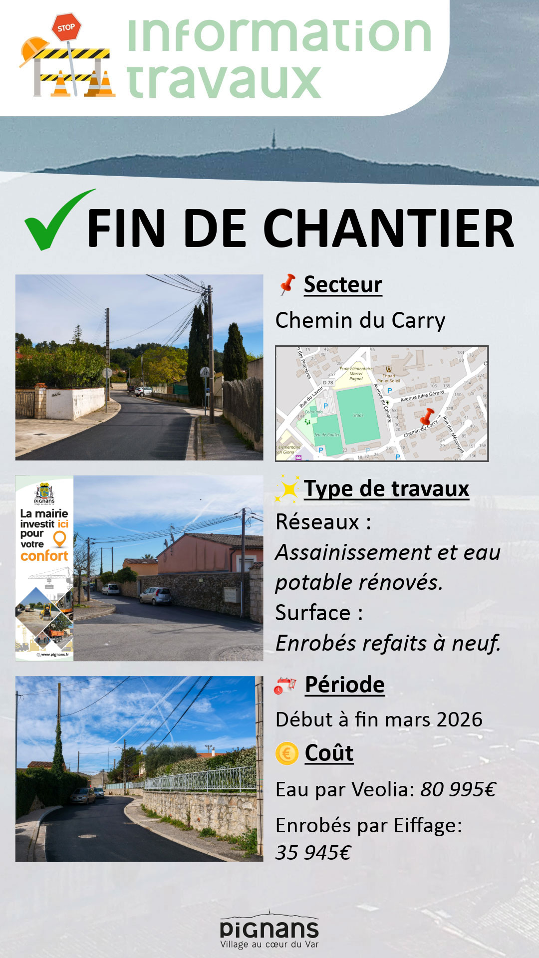 đźš§[Information travaux] Fin de chantier chemin du carry