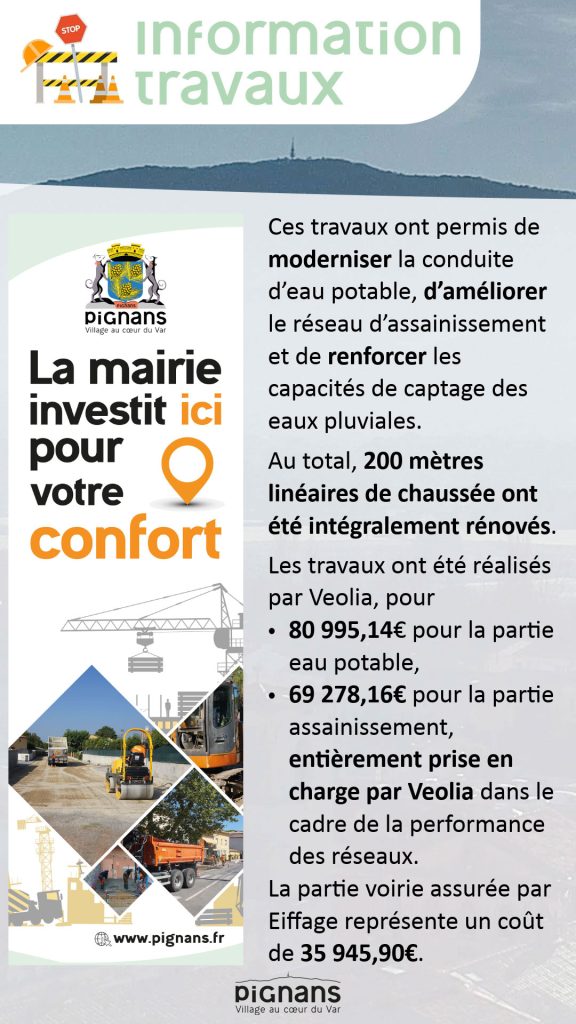 Ces travaux ont permis de moderniser la conduite d’eau potable, d’améliorer le réseau d’assainissement et de renforcer les capacités de captage des eaux pluviales.