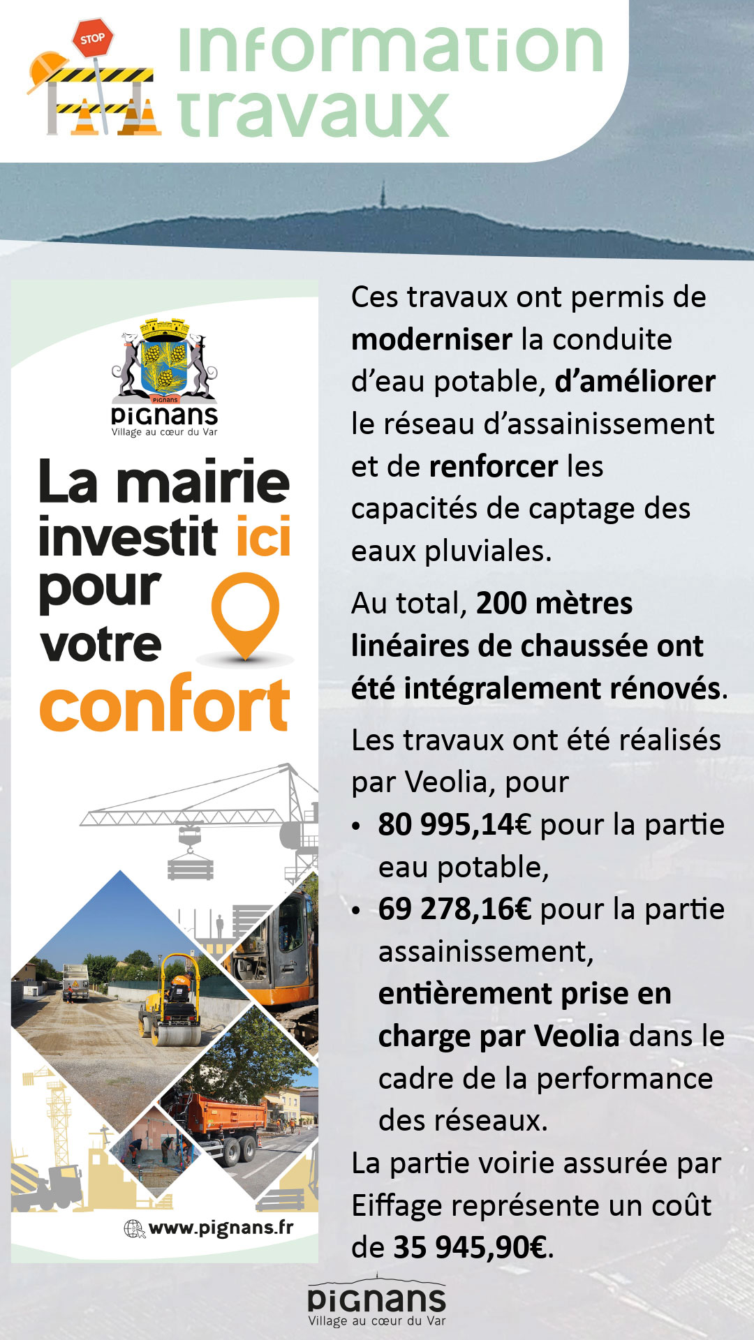 ▪️69 278,16€ pour la partie assainissement, entièrement prise en charge par Veolia dans le cadre de la performance des réseaux.