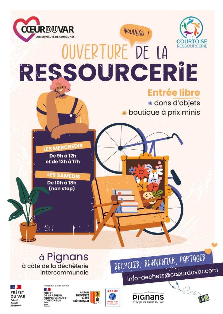 ℹ️La Courtoise Ressourcerie de Pignans ouvrira partiellement à compter du samedi 11 avril 2026, dans l’attente de l’accord du CDIAE permettant l’intégration des salariés en insertion.