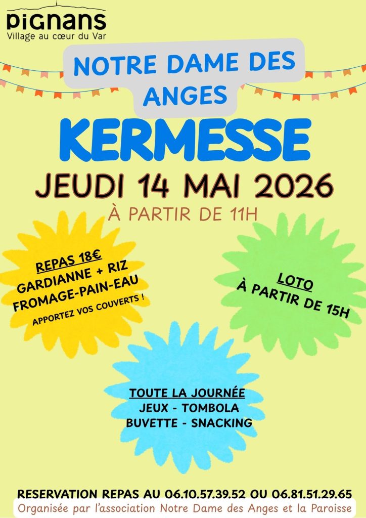 14 mai – Kermesse – Notre Dame des Anges Publié le 14 avril 2026 Catégories: agenda, Association Notre Dame des Anges, Évenements, Les associations 14 mai 2026 agenda Association Notre Dame des Anges Évenements Les associations