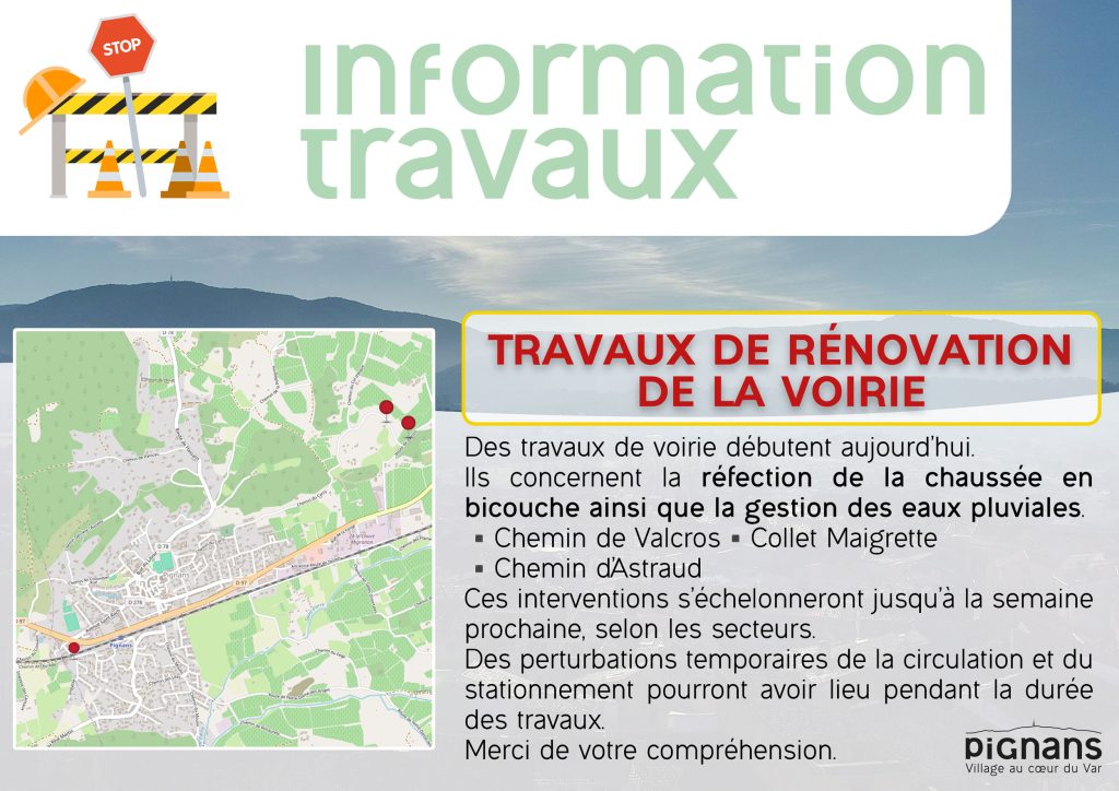 Travaux de rénovation de la voirie – Valcros – Collet Maigrette – Astraud